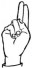На ћирилици написано НЕВЕНА БАДРИЋ састоји се из 12 слова [?]. Исписано ћириличном једноручном азбуком за глувонеме: